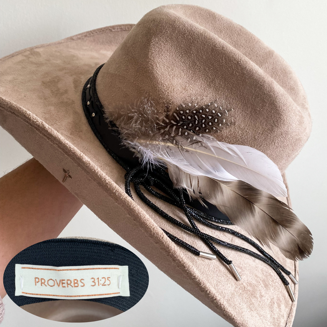 Hand stitched label, Proverbs 31:25 inside every hat.