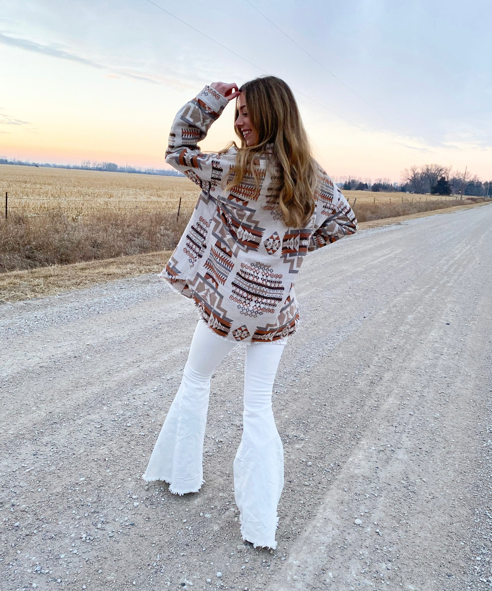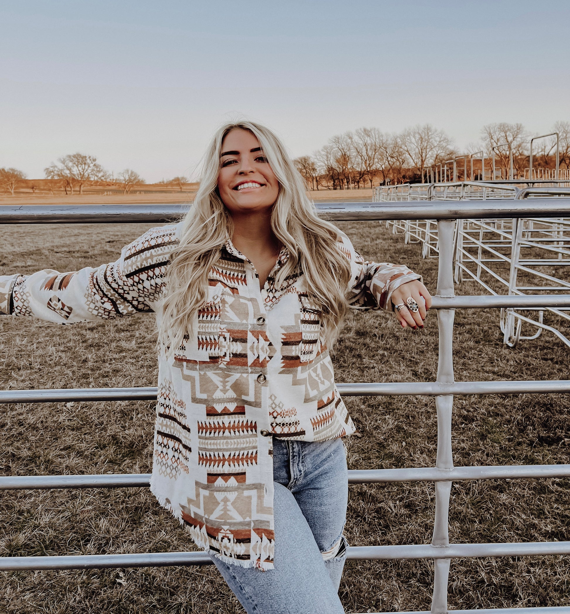 - Oatmeal base color with grey, dark brown, taupe and burnt orange accents