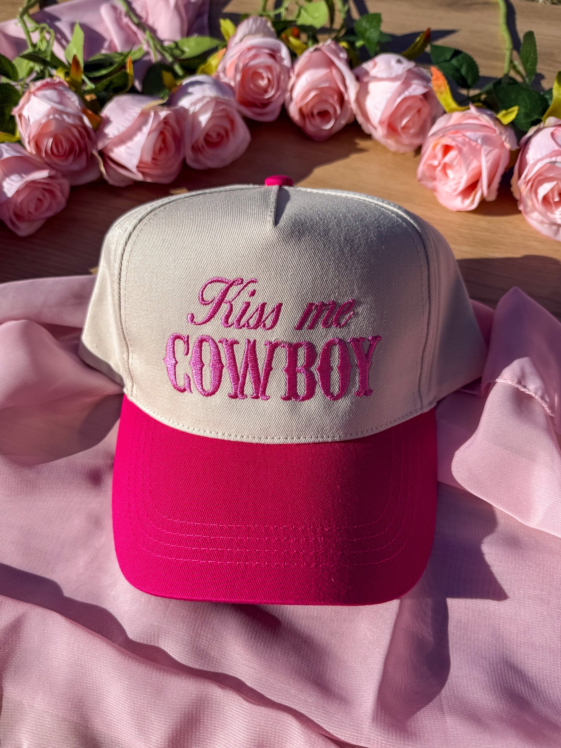 - Embroidered: "Kiss Me Cowboy"